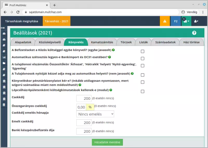Példa: TÁRSASHÁZ - LAKÁSSZÖVETKEZET MÓD