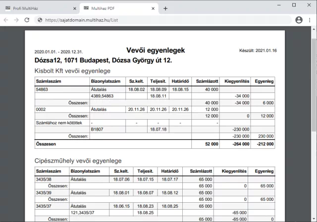 A vevő és szállító egyenlegek lekérdezhetőségével egyértelműen látható, hogy milyen számlához milyen összegű kintlévősége van akár a társasháznak, akár a vevőnek