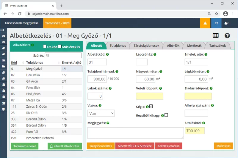 A törzsadatkezelésben minden albetéttel és tulajdonossal kapcsolatos adat könnyedén rögzíthető. Megadhatók a bankok és pénztárak, vevő és szállító törzsek, testre szabható a levelezés és analitika törzs, továbbá mérőórák is felvihetők.