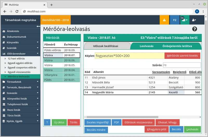 A Multiház akár úgy is konfigurálható, hogy egy házban többféle mérőóra diktálás / leolvasás (mérőóra bejelentés) is